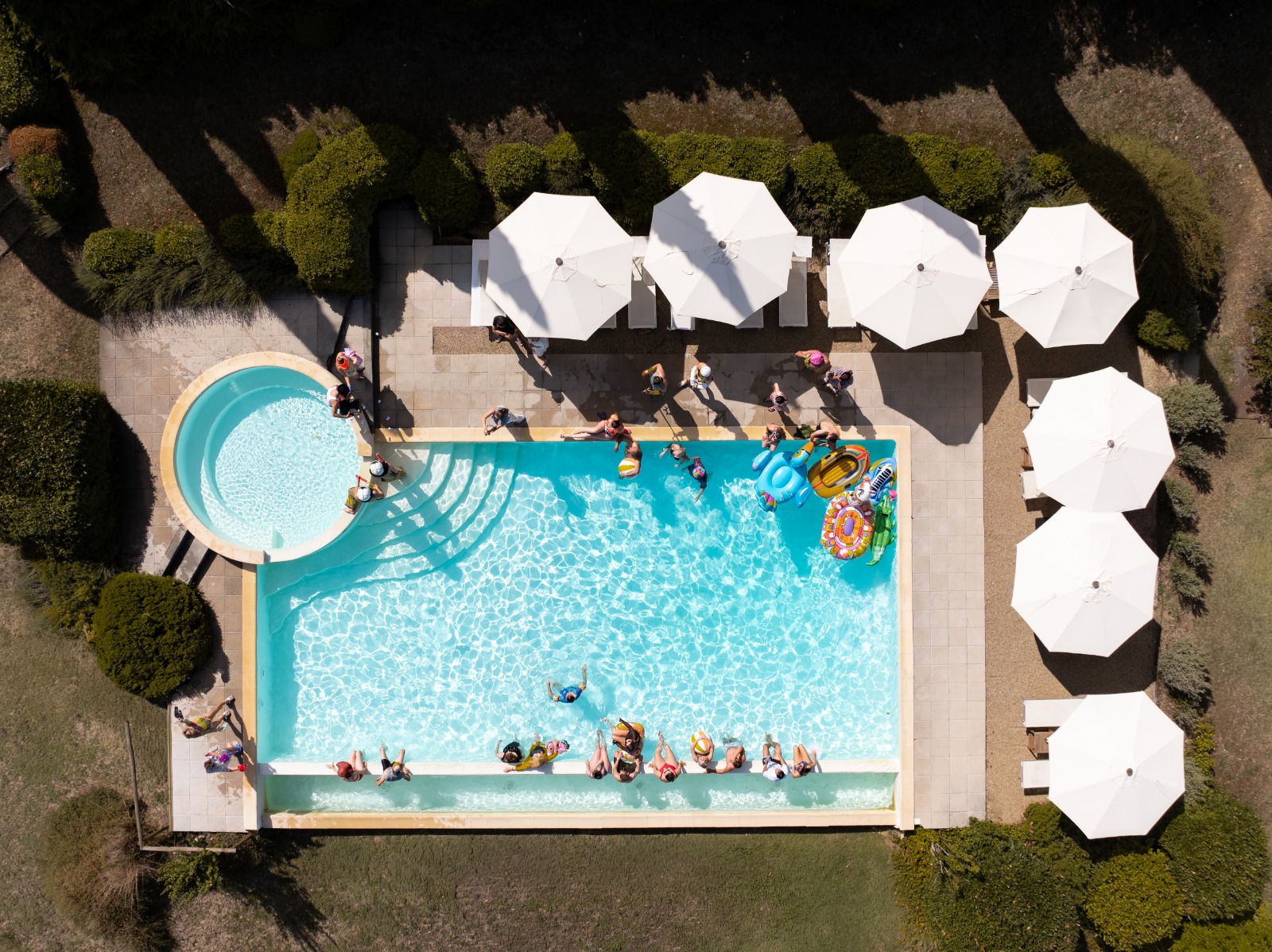 Our charming property comprises seven spacious apartments, a welcoming bar, a refreshing swimming pool, and ample outdoor areas, providing the ideal setting for your next retreat.